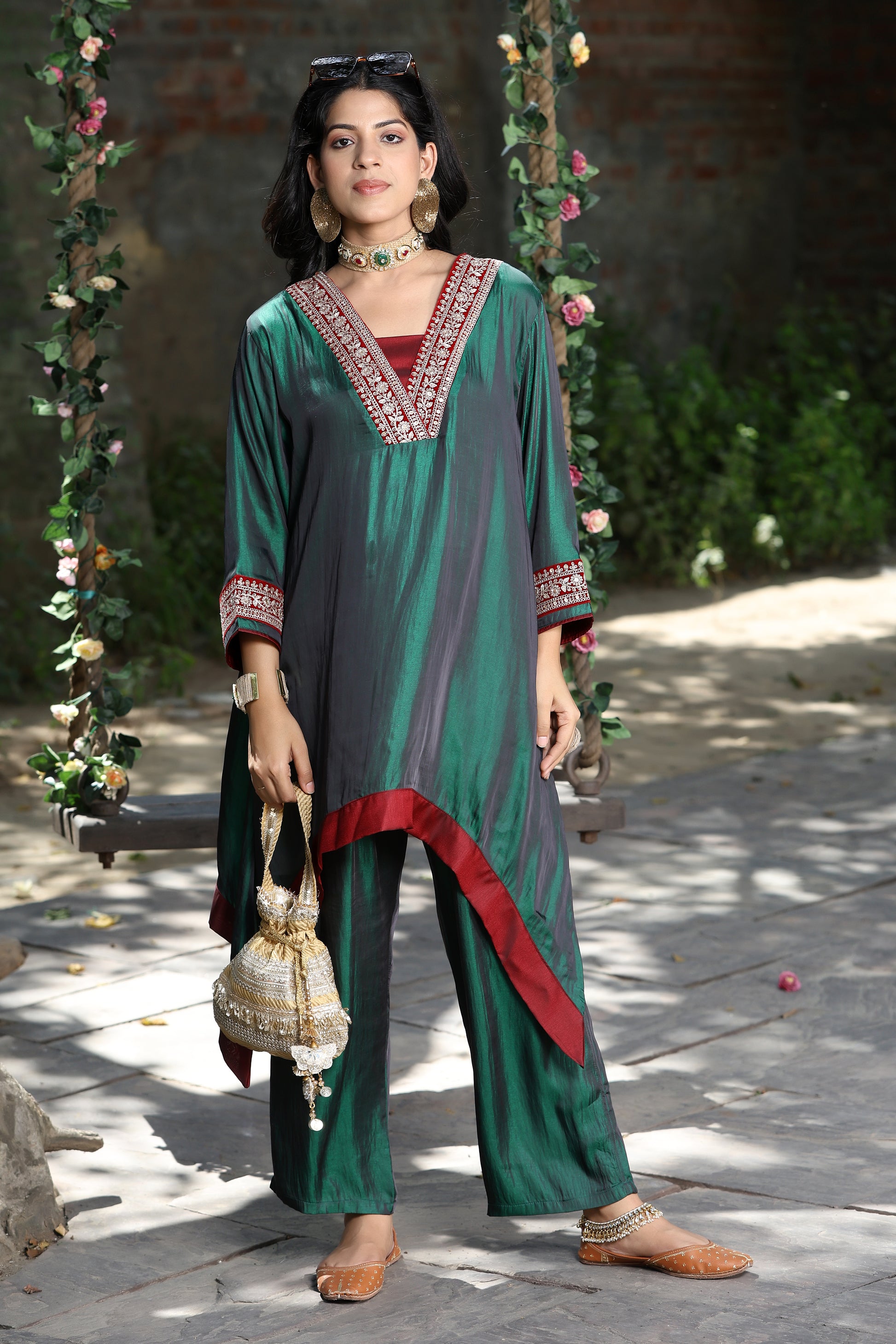 Embroidered summer-cool sets with elegant V-necklines, flowy fabric, and eclectic colours—radiating happy, fun vibes perfect for every celebrations.