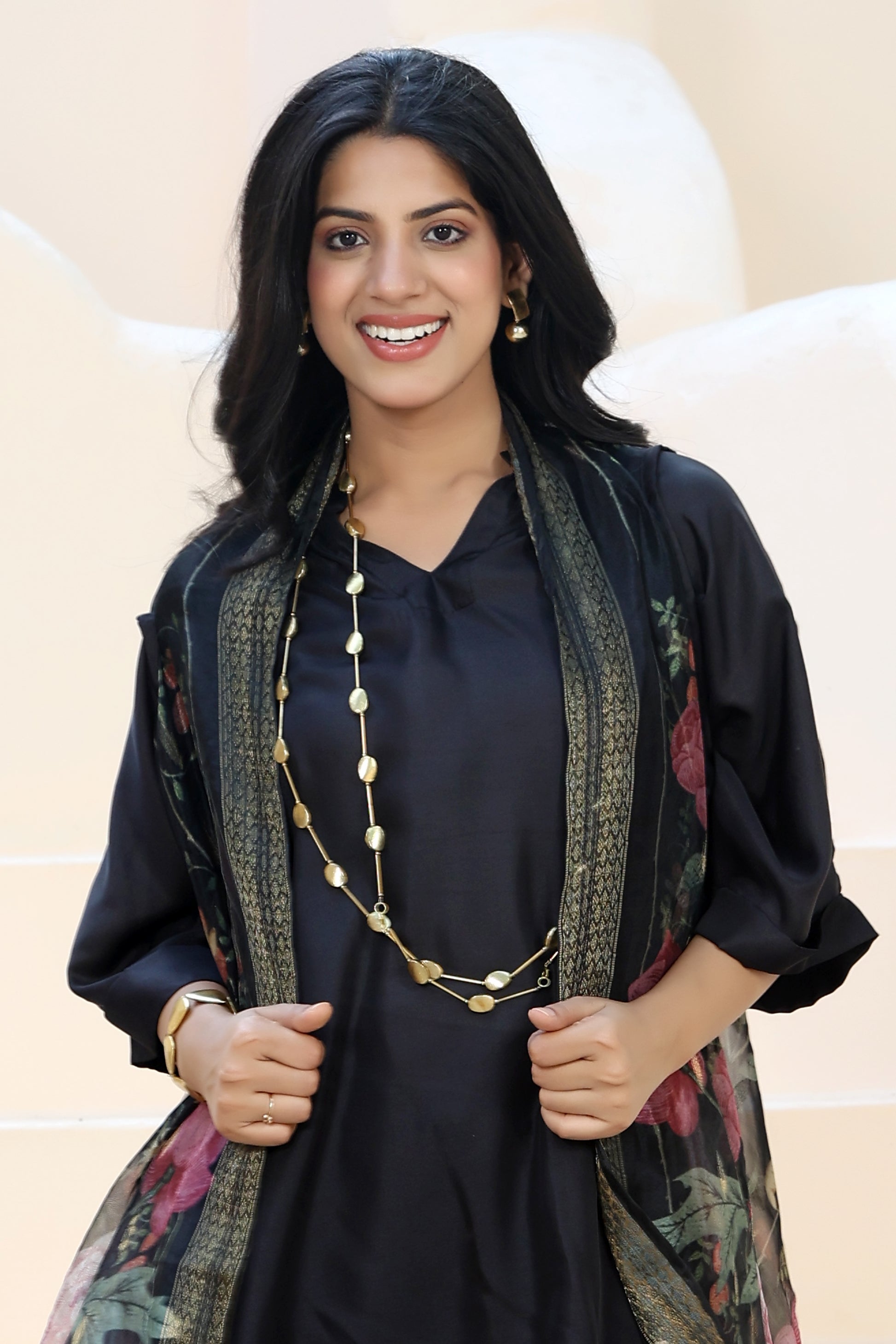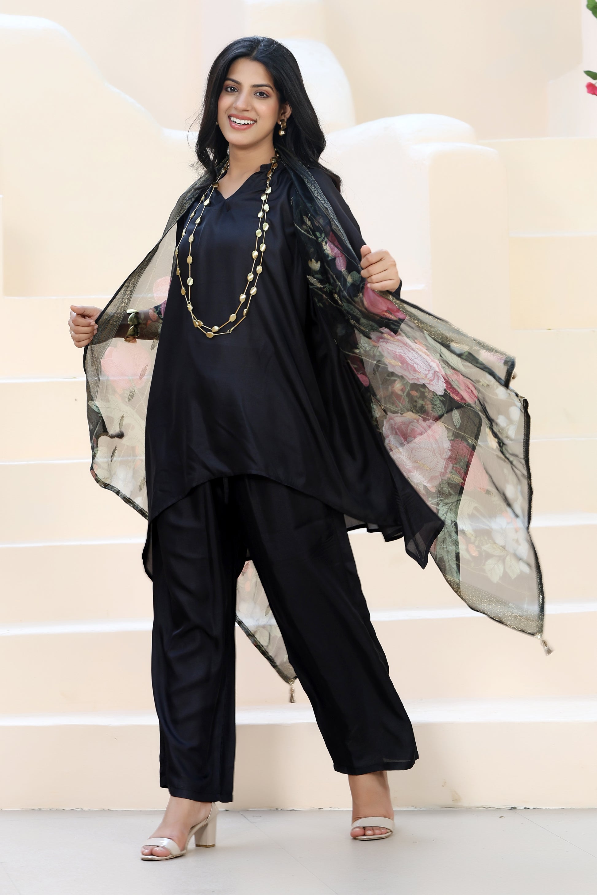 Summer-cool co-ord sets in vibrant hues, crafted from flowy Glow Silk. Paired with matching easy-fit pants and an optional waterfall cape, they exude effortless luxury — playful, breezy, and unmistakably chic.