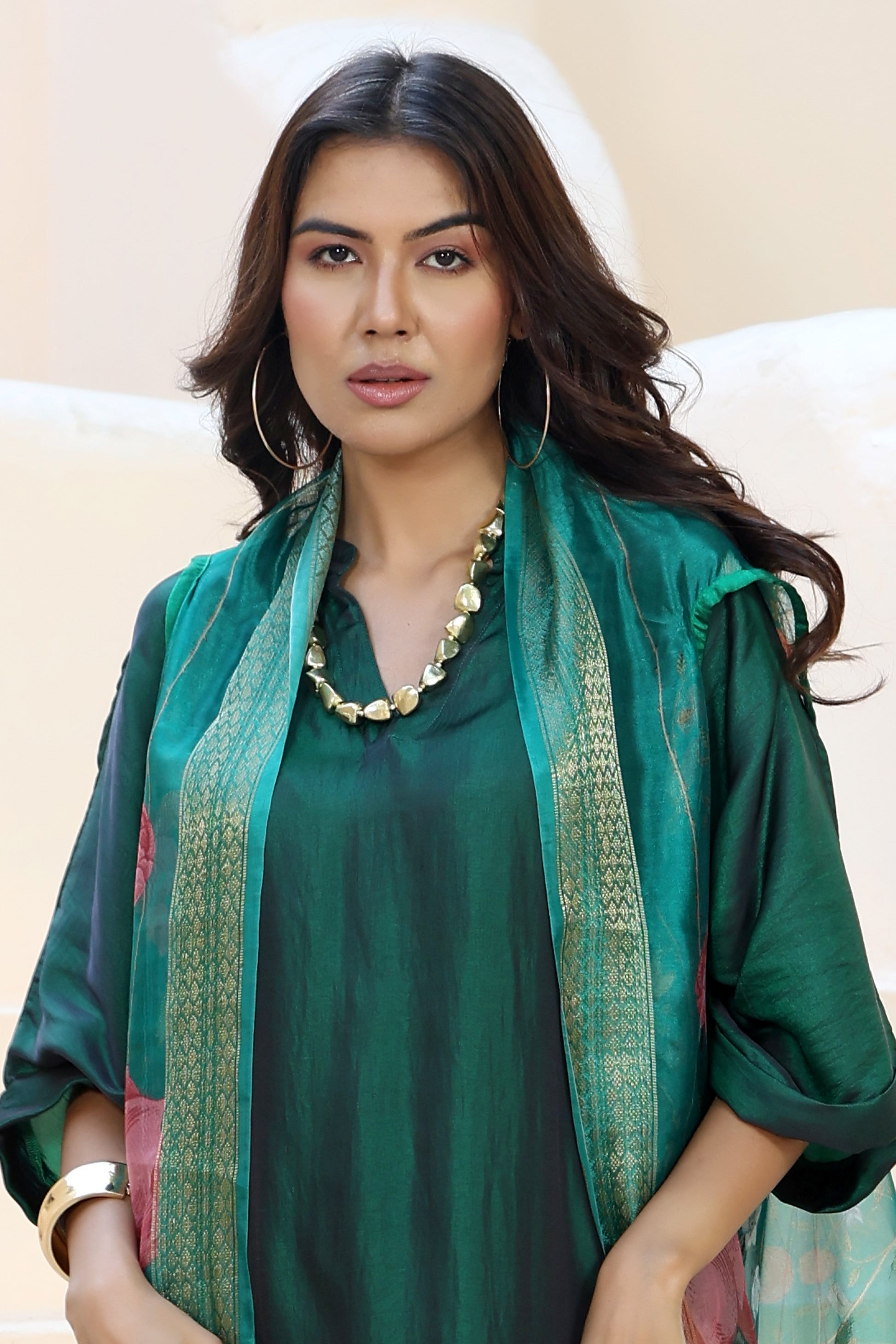 Summer-cool co-ord sets in vibrant hues, crafted from flowy Glow Silk. Paired with matching easy-fit pants and an optional waterfall cape, they exude effortless luxury — playful, breezy, and unmistakably chic.